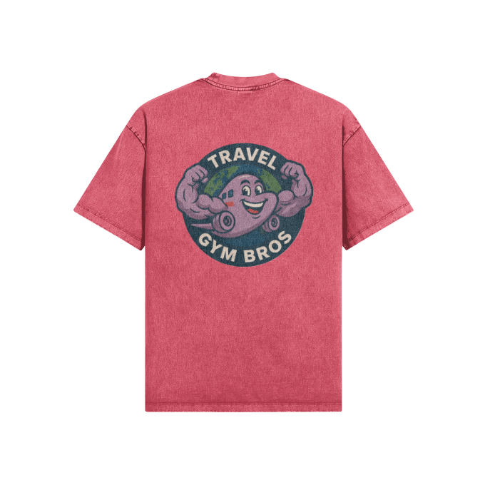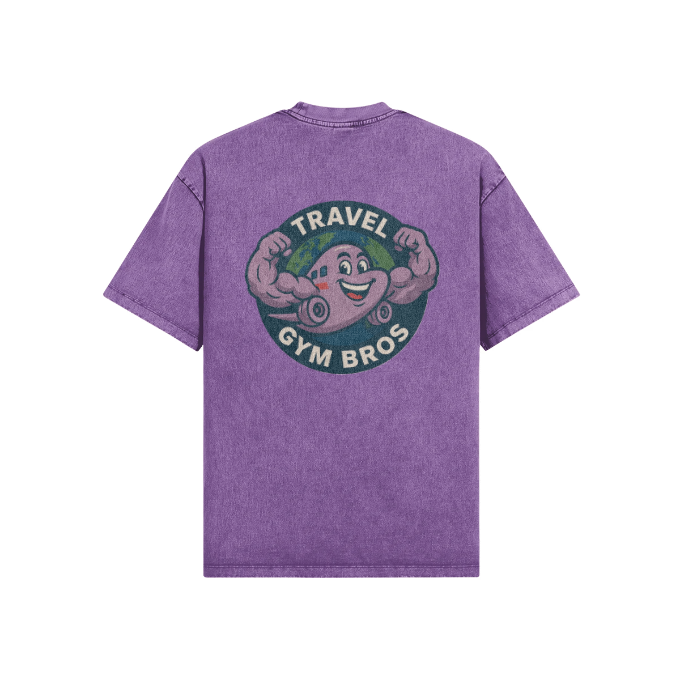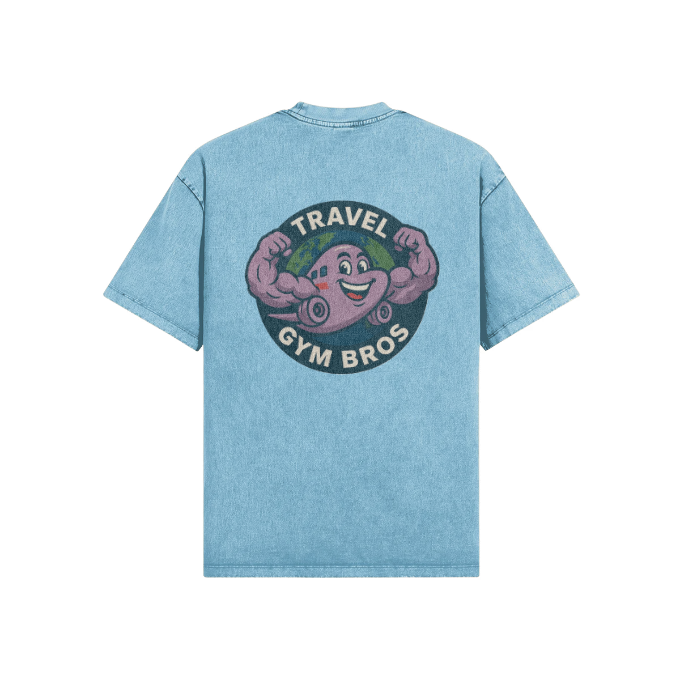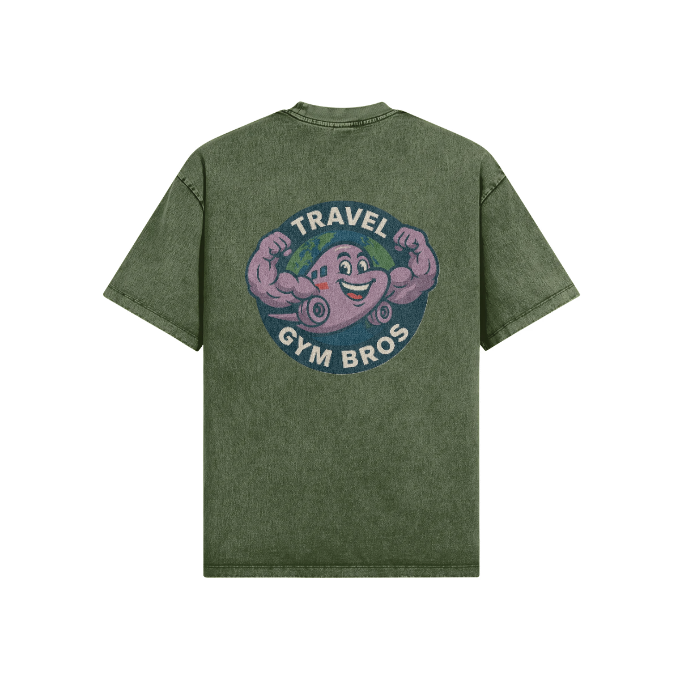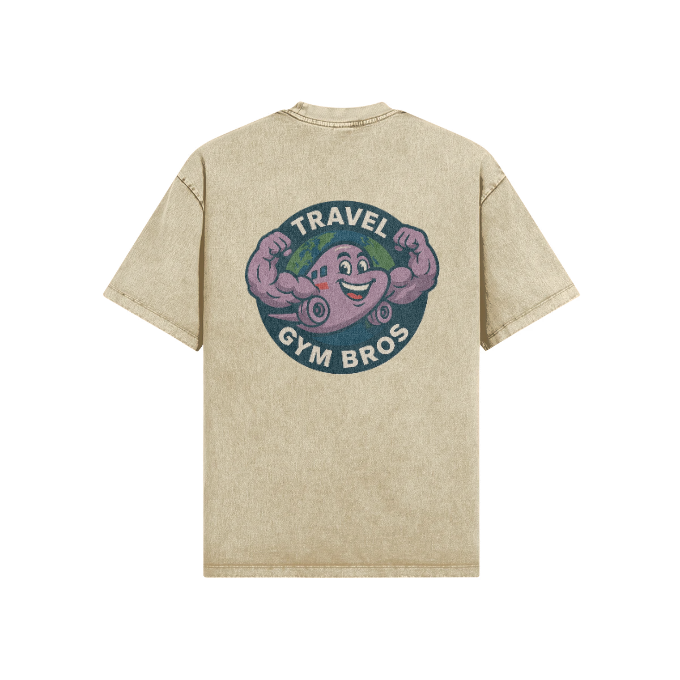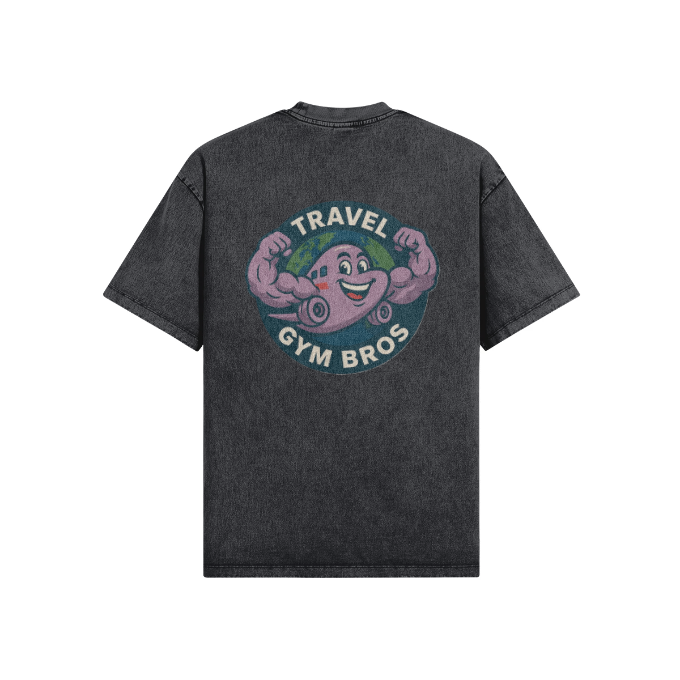 The Unisex 'Travel Gym Bros' Snow Wash T-Shirt, perfect for that oversized gym look. This t-shirt features a unique snow wash effect and showcase the Travel Gym Bros logo, giving it a vintage and distressed look that will make you stand out from the crowd. The 100% cotton fabric gives the tee a sturdy construction and a soft and comfortable feel, making it a pleasure to wear all day long. Available in a range of colors, from classic earth tones to bold and vibrant hues, the tee allows you to express your personal style and make a statement.